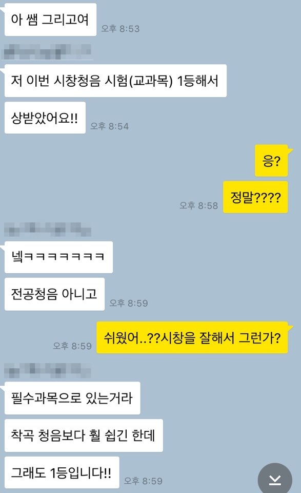 저 이번에 시창청음 시험(교과목) 1등해서 상받았어요!